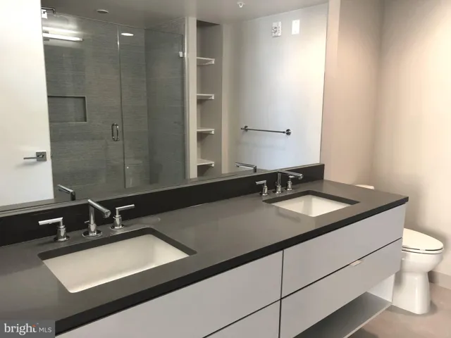 This ideal location nestled between Logan Circle and the 14th Street Corridor is walkable to Metro and a wonderful selection of restaurants, grocery stores and boutique shops. It is a light-filled 2BR/2BA residence with nearly 1,000 square feet of living space and a designers feel throughout with a well-appointed Kitchen boasting stainless steel Bosch appliances, gas cooktop, fine cabinetry and quartz counter tops, a luxurious Master Bath with Porcelanosa, double sinks and a seamless glass shower. Each bedroom has a large walk-in custom Elfa closet system. For added convenience, there is a Nest learning thermostat and a front-loading Bosch washer and dryer. The building offers residences use of a beautiful roof top terrace with panoramic views of Washington, a building-maintained gas grill and several lounge areas, bike storage and a secure package room. An assigned, on-site parking space is available for tenant’s sole use.