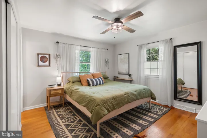The main level also includes three comfortable bedrooms and two full bathrooms. The primary suite offers hardwood floors, a ceiling fan, and a private en-suite bath. The additional bedrooms also feature hardwood flooring, ceiling fans, and ample natural light through newer windows that offer efficiency and peace of mind.