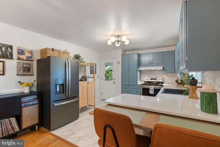 Step inside to a bright, open living room with stunning hardwood floors that flow seamlessly into the modern kitchen. Featuring sleek stainless steel appliances, upgraded countertops, and ample cabinetry, the kitchen is both functional and elegant. A spacious breakfast bar offers the perfect spot for casual meals, morning coffee, or gathering with family and friends. The kitchen flows effortlessly into the dining area and opens directly to the carport—currently styled as a relaxing covered patio.