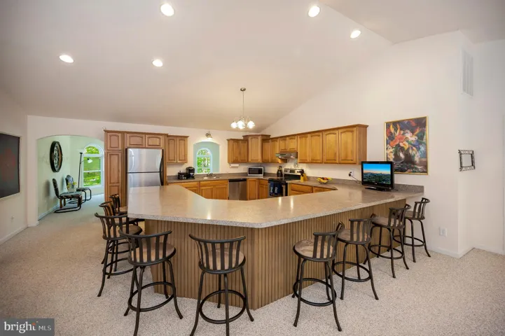 Do not miss the photos showing boats within this cove location. Sellers have hosted family reunions with loads of boating activty year after year!! Looking for my new family!! Walkin to an impressive open bright oversize living space. Cookies fresh from the oven reach all the waiting hands gathered around the expansive surround eating bar. The children numbered 8 when together!! The hanging chandelier area identifies a more traditional dining space. From the kitchen one can see through to the lakeside family room & conveniently use the pass thru from room to room!! Definitely a pass through with a veiw of the outdoors. The Palomino maple cabinetry offers a warm inviting color to the great working counter space kitchen. Off the dining area is a guest en-suite perfect for visiting family, friends & privacy. From the family room one enters the lakeside en-suite including a jet tub, sep shower, split vanity setup with a make-up vanity and two walk -in closets. Two additional bedrms, a large laundry room & garage complete main level. What a fab surprise is the lower party room. Its steel beam supported open area easily accommodates line or square or ballroom dancing :). The speakers convey. The recessed lighting adds to the ambiance. There is an entertainment wet bar & convenient mini kitchen setup. Behind the bar is a sizeable vinyl floored hobby, exercise or craft room and a two rough-in room storage area. The lakeside lower bedroom accesses the full bath as does the party/rec room. The adjoining patio affords great spillover space to enjoy the lake & its view out of the cove. The yard is naturally landscaped with less maintenance floral beds.