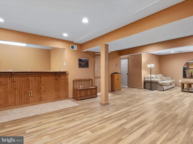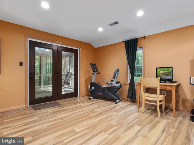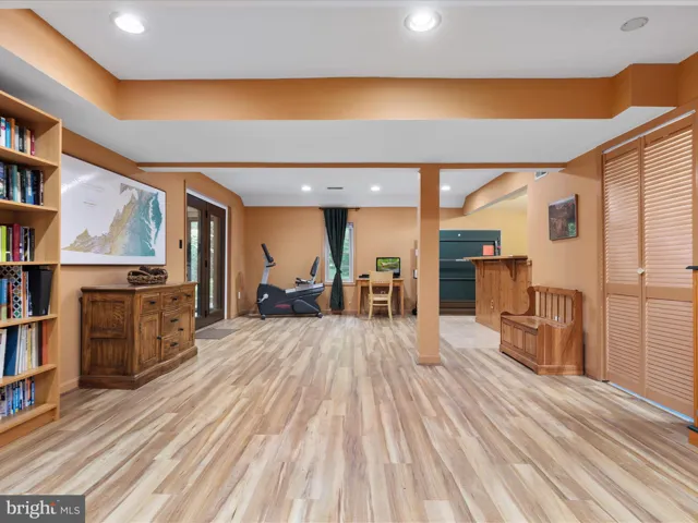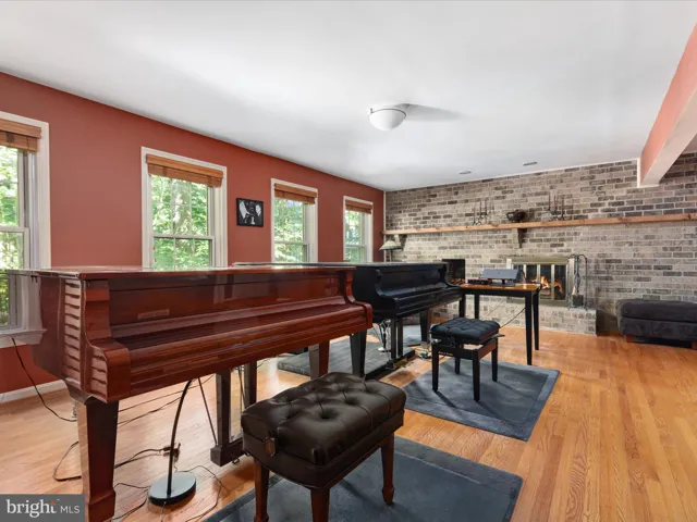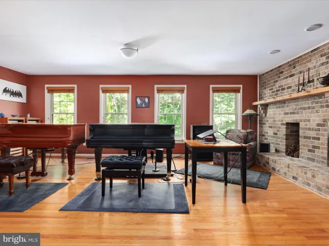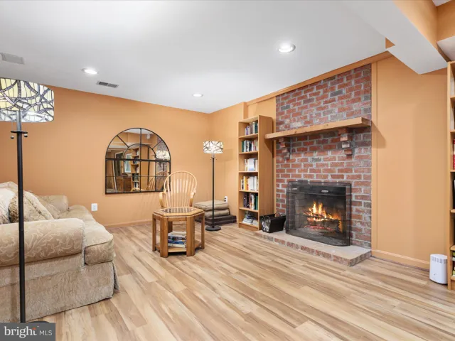 Just off the kitchen, the sunken living room features a cozy wood-burning fireplace, a full bath, an office, and a walk-in laundry room. The lower level is a destination in itself, offering a large recreation room with a second wood-burning fireplace, luxury vinyl plank flooring, a built-in entertaining bar, and walk-out access to a brand-new screened-in porch—a perfect place to relax and enjoy the tranquil backyard setting. Additional rooms, a full bath, and a second laundry hook-up on this level provide incredible flexibility for guests, work-from-home needs, or multigenerational living.