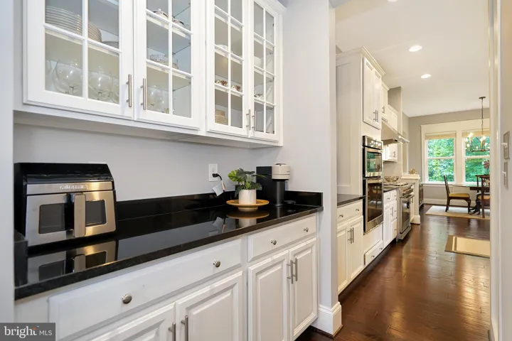 Kitchen has Thermador refrigerator, Dacor 6 burner free standing gas range, Dacor range hood, reverse osmosis water filter under kitchen sink. Custom crown moldings throughout the first level, and new light fixtures.