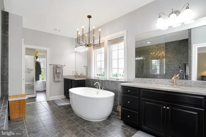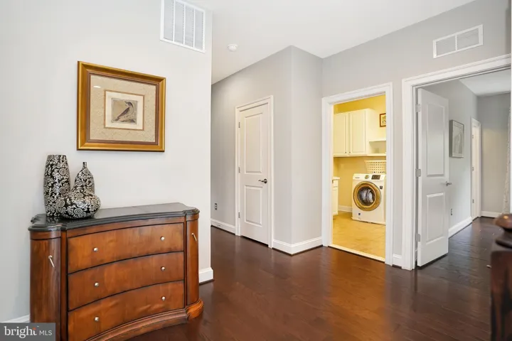 Top level: Hardwood floors on the entire level. Spacious primary bedroom with tray ceiling, sitting area and luxury ensuite-bathroom with soaking tub, two bedrooms share Jack and Jill bathroom and one bedroom with ensuite bathroom, and laundry room with built-in cabinets.