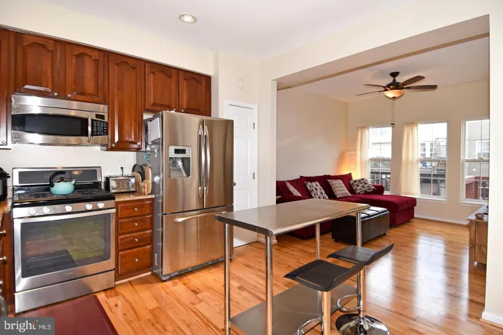 This beautifully maintained home offers the perfect blend of style and convenience, featuring a one-car garage and plenty of extra parking for guests. Enjoy gleaming hardwood floors throughout both the main and upper levels. The gourmet kitchen boasts rich cherry cabinets, sleek stainless steel appliances, granite countertops, and a spacious center island. So ideal for entertaining! Soaring vaulted ceilings and ceiling fans add comfort and elegance to the upper-level bedrooms. Come outside to a fully fenced backyard with a generous two-level deck. Perfectly situated . Perfect for relaxing or hosting gatherings!