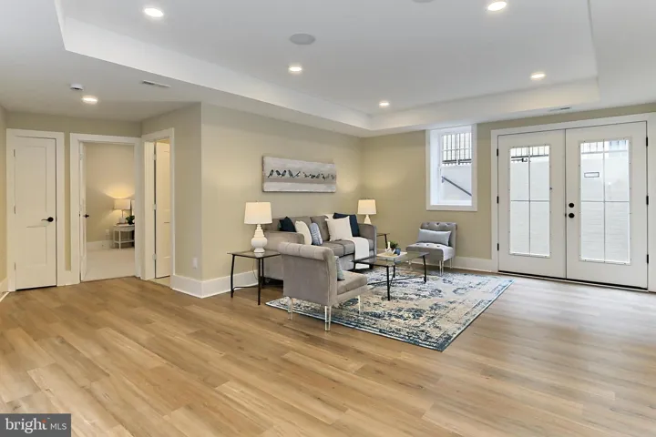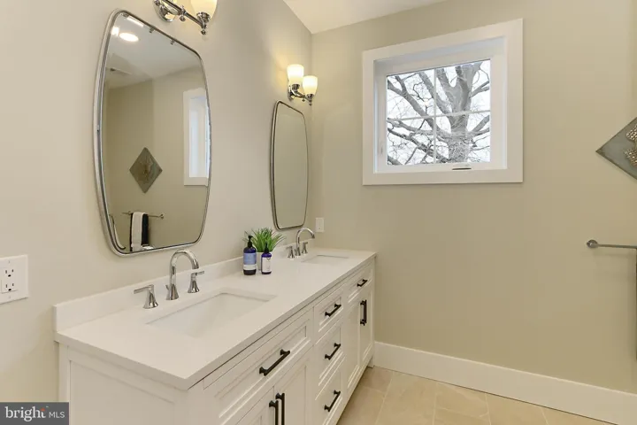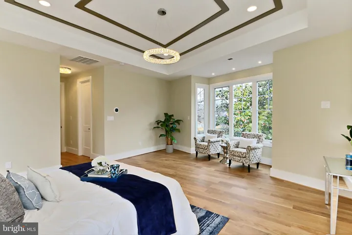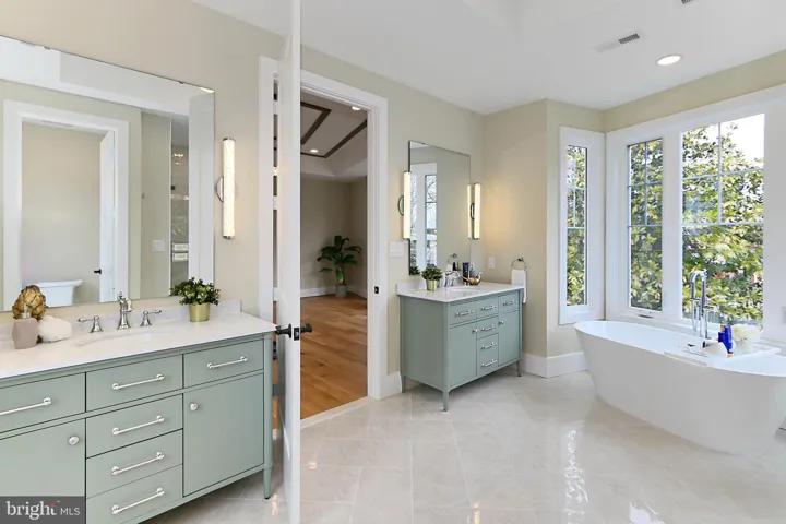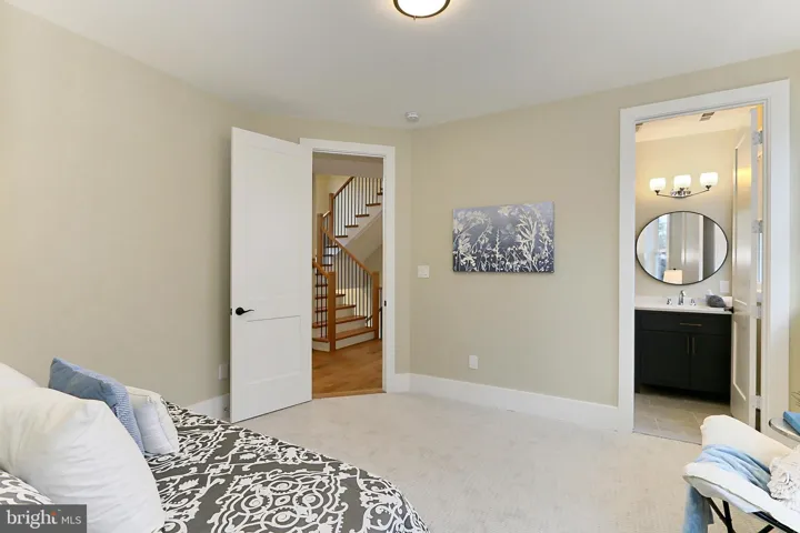 The bright and expansive primary suite features two walk-in closets with custom shelving and a spa-inspired bath with split vanities, designer lighting, and a zero-entry shower adorned with elegant tilework. Upstairs, a private guest suite with a full bath offers a perfect retreat for older children or visitors. The finished lower level boasts a second family room, a bedroom, and a full tiled bath, ideal for in-laws or extended guests.
