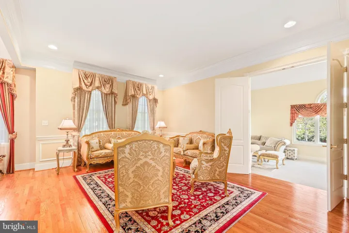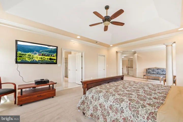 Spectacular estate nestled on nearly one acre private, fenced lot in the heart of prestigious Loudoun Valley Estates. Surrounded by lush greenery, this one-of-a-kind home offers over 8,000 square feet of meticulously finished space, featuring 6 bedrooms, 7 full bathrooms, and a 3-car garage. Upon arrival you are greeted by stunning curb appeal—brick paver circular walkway, elegant exterior lighting, and manicured landscaping. Step inside to soaring ceilings, a grand dual staircase, and rich hardwood floors flowing throughout the main level. Entertain in style in the formal living and dining rooms or retreat to the sun-soaked solarium—your own peaceful escape. The main level also includes a spacious bedroom and full bath, ideal for guests or multi-generational living. The Grand two-story family room is filled with natural light from picturesqe windows, while the chef-inspired kitchen boasts abundant cabinetry, a huge center island, double wall ovens, custom backsplash, and a generous breakfast room. A convenient mudroom off the garage connects to a large laundry room with a utility sink. From the kitchen, step outside onto the expansive deck, surrounded by trees and trellises, offering privacy and panoramic views—your own private sanctuary. Upstairs, the luxurious Primary suite features a private sitting room, tray ceiling and walk-in closet. The luxurious spa-style en-suite bath is a dream: dual private commodes, a central soaking tub, separate vanities, an oversized walk-in shower and second massive walk in closet. Three additional upstairs bedrooms each offer their own private full bathrooms, ensuring comfort for everyone.