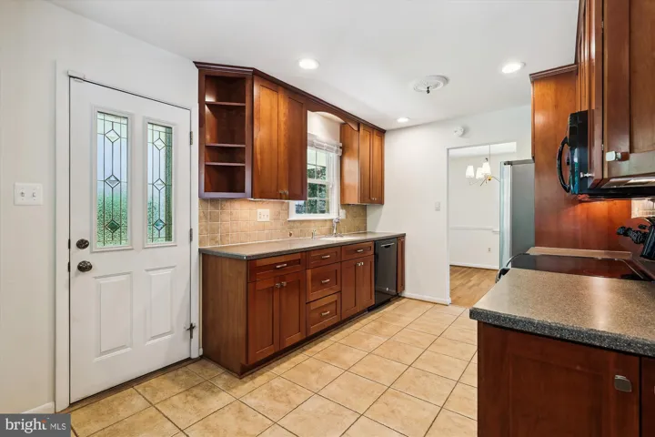 *WONDERFUL* 5 BR/2.5 BA on 3 levels with large deck and fenced yard! Inviting and spacious front porch; fabulous hardwood flooring on the main and upper levels; updated kitchen with built-ins, loads of cabinet, counter space and tile backsplash; updated appliances; pantry shelves, under cabinet lighting and convenient landing spot at the side door from the carport; dining room space with chair rail; large living room with windows overlooking the beautiful backyard; upstairs, the inviting primary suite includes beautifully updated private full bathroom and walk-in closet; three good-sized additional bedrooms and renovated hall bathroom. The lower level includes a large family/rec room with built-in cabinets/shelves and fireplace, 5th BR with closet and updated half bathroom. The LL also features huge utility room with built ins plus sliding glass door walkout that leads to the big deck with seating; backyard includes shed with electricity; located on a fantastic double cul-de-sac this home is close to major commuter routes, shopping, restaurants and Metros!
