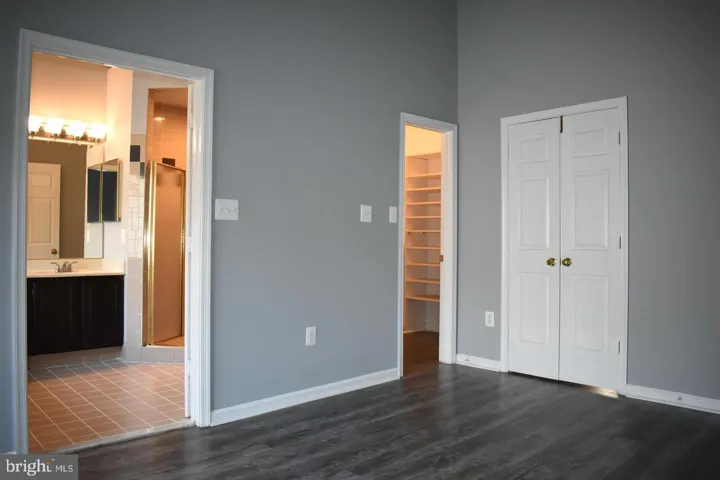 All bedrooms feature laminate wood flooring, including the spacious primary suite with a luxury bath offering dual vanities, a soaking tub, a separate shower, and an impressive walk-in closet with built-in shelving.