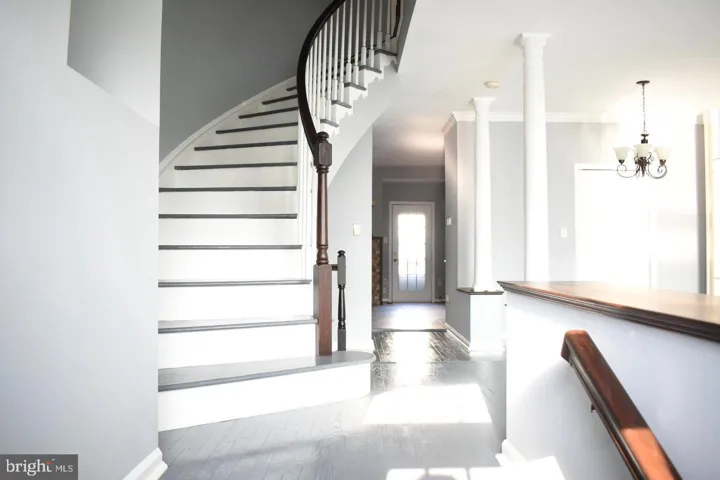 Step inside to a stunning entryway with curved stairs and chandelier, and elegant formal living and dining areas flanked by architectural columns. The kitchen features granite countertops, tile flooring and backsplash, and an eat-in area with a cozy fireplace—perfect for casual dining.