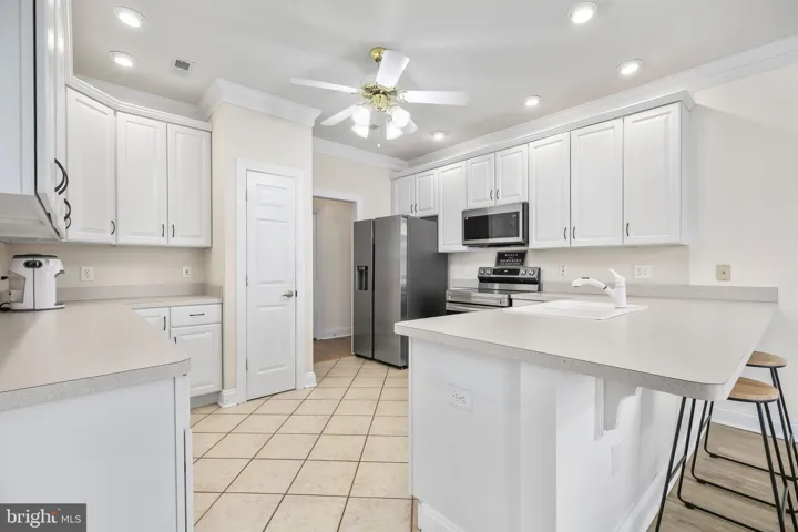The well-appointed kitchen is a chef’s delight, featuring NEW stainless steel appliances, 42 inch white cabinetry, pantry, and generous counter space for effortless meal prep and entertaining. There’s also a breakfast bar and dining area for multiple gathering options.
