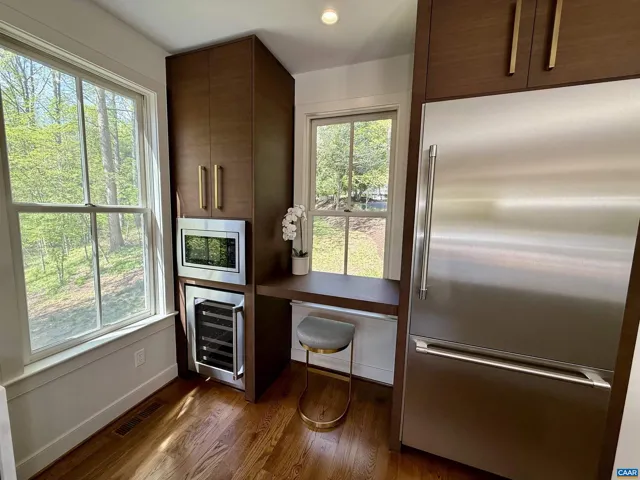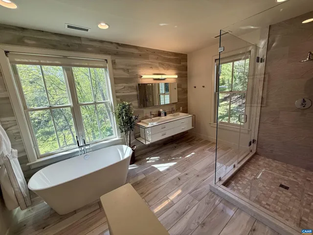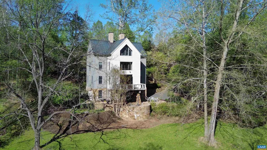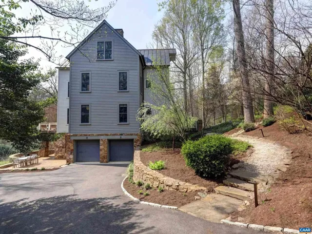 A breathtaking architectural masterpiece in Inglecress, offering nearly 5 acres of luxury, privacy, & natural beauty. Perfectly sited at the end of a peaceful cul-de-sac. Spectacular 4,432SF custom home showcases 4 bedrooms, 3 full and 2 half baths, & a dramatic modern design, fully reimagined by Alexander-Nicholson w/ the finest craftsmanship & materials. Step through a stunning mahogany pivot door into sun-drenched living spaces with soaring ceilings, sleek steel-and-oak staircases, and walls of glass framing endless pastoral and wooded views. The designer chef?s kitchen dazzles w/ Thermador appliances, marble waterfall counters, & custom cabinetry, flowing seamlessly into expansive living & dining areas w/ multiple fireplaces and a NanaWall opening to the elevated deck. Luxury primary suite is a true sanctuary w/ French doors overlooking Ivy Creek & a spa-worthy bathroom. The top floor offers a vaulted guest retreat, while the ground level features a chic family room, wet bar, and 2-car garage. Private elevator, whole-house generator. Relax on elevated deck, gather around the fire pit near the creek, or roam your own park-like grounds w/ direct trail access and 825ft of waterfront.,Marble Counter,Wood Cabinets,Fireplace in Family Room,Fireplace in Living Room