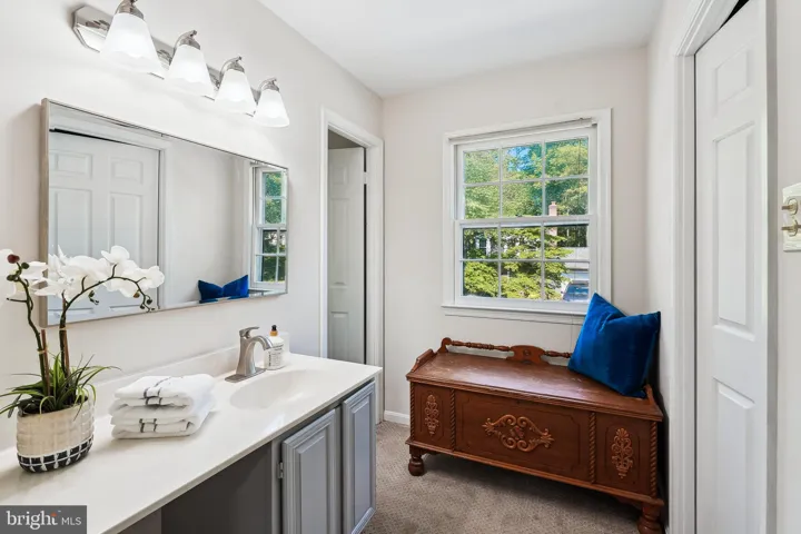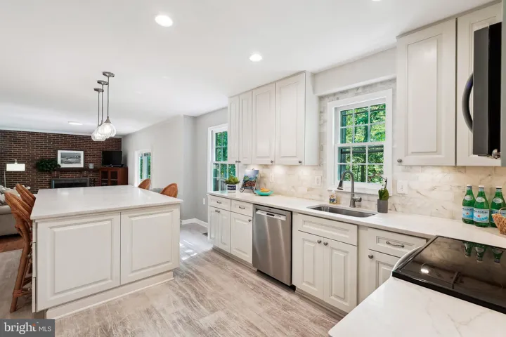 Inside, enjoy hardwood floors, a renovated kitchen with Cambria quartz counters, custom 42” cabinetry, stainless steel appliances, and an expanded island. The cozy family room with a brick fireplace opens to the deck—ideal for dining under the stars. The upper-level owner’s suite includes a sitting area, walk-in closet, and adjoining bathroom with separate vanities. Three additional bedrooms share a full hall bath.