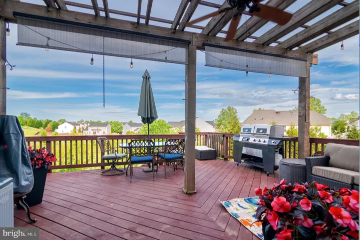Looking for a beautifully updated and well maintained home just outside of the DC Metro in Loudoun County?? Welcome to this thoughtfully upgraded home nestled in the highly desirable Hirst Farm community of Purcellville—known for its friendly atmosphere, small-town vibe and scenic surroundings. A welcoming full front porch and beautifully landscaped yard set the tone for what’s inside. The spacious family room is the heart of the home featuring a striking stone fireplace with pellet stove, soaring ceilings and extended layout offering the perfect setting for both relaxing and entertaining. The adjoining gourmet kitchen is a generous space for gatherings and includes high-end finishes, an island / breakfast bar, home command center and pantry. The main level also features updated hardwood flooring throughout with a spacious dining room, light-filled living room, private office, and convenient powder room. Step outside from the kitchen to a large deck with custom pergola and enough space for the grill, dining table and steps down to the fenced backyard that opens to lush green space—giving the feel of an expansive yard without the upkeep.