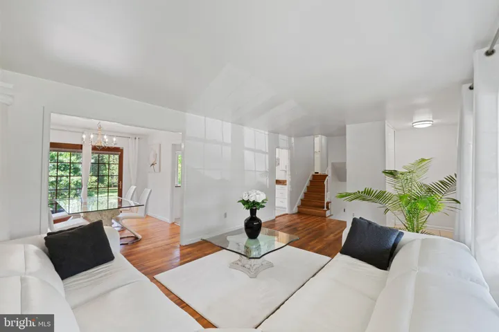 Hardwood floors run through much of the main level, complemented by fresh paint and abundant natural light. The open floor plan features a formal dining room connected to the spacious living area — perfect for entertaining or everyday living. All three bedrooms are generously sized, and the two full baths have been tastefully refreshed.