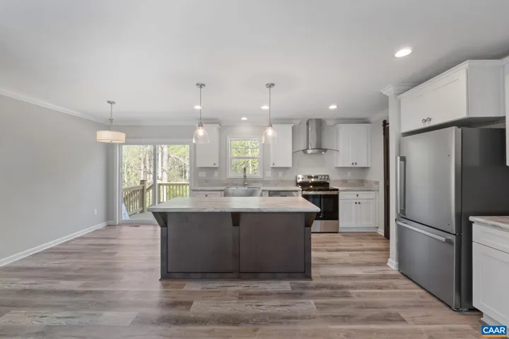 Contructuion is starting! This beautifully built residence boasts 3 BR and 2 BA, centered around an open floor plan. The spacious living room seamlessly connects to the eat-in kitchen, which includes a central island, adjacent to a laundry/mud area, both w/ample cabinetry. The primary bedroom suite offers a walk-in closet w/built-in organizers, a luxurious walk-in tiled shower, dual vanities, and a separate water closet. Enjoy the expansive rear deck that spans the length of the house, perfect for outdoor relaxation/entertaining. PHOTOS ARE SIMILAIR TO WHAT IS BEING BUILT. DELIVERY IS ESTIMATED TO BE SEPTEMBER AND IS SUBJECT TO CHANGE. See floor plan. Selections have been made and are similair to photos. 2×6 construction with custon quality features. Purchaser can view the house in the photos till the end of May and a model is availble in another city in VA. OWNER AGENT,Wood Cabinets
