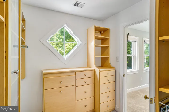 There are two upper levels – the first level features a charming bedroom . It would work as a spacious office or bedroom. Up a few more stairs to the amazing Primary bedroom. A light-filled space that features gorgeous built-ins and a huge walk-in closet-dressing room. The lovely Primary bath features a jetted tub, dual sinks, large linen closet and water closet. The other bedrooms are spacious and have plenty of closet space with custom shelving. The laundry room is on the bedroom level, which is an underrated feature in today’s busy lifestyle!!