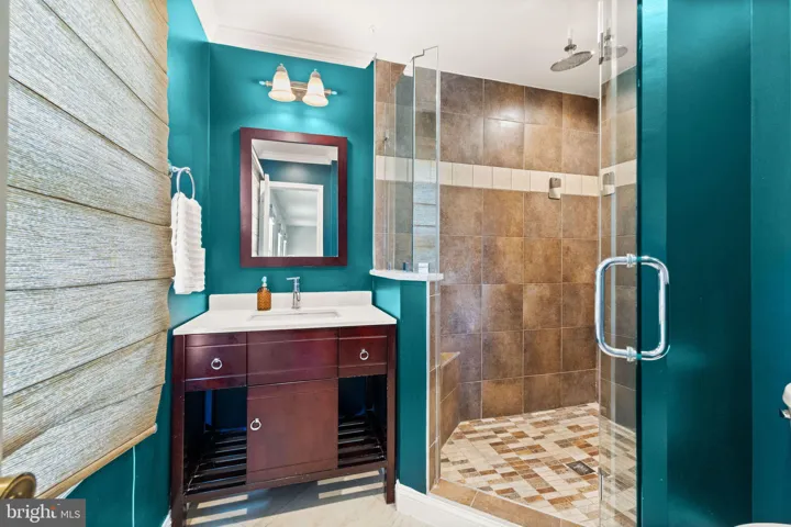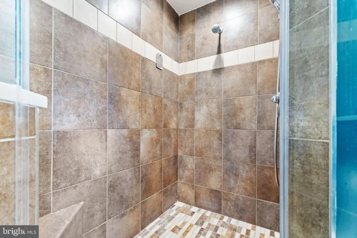 Upstairs, you will find a spacious primary suite with a walk-in closet and a luxuriously updated en-suite bath, featuring a frameless glass shower, upgraded tile, and modern vanity. Three additional bedrooms share a beautifully updated hall bath with designer tile and newer fixtures. Hardwood flooring in the upper hallway adds a touch of elegance.