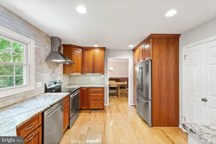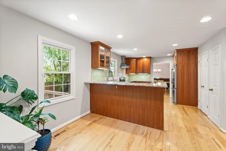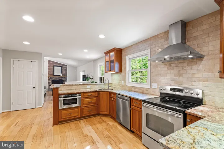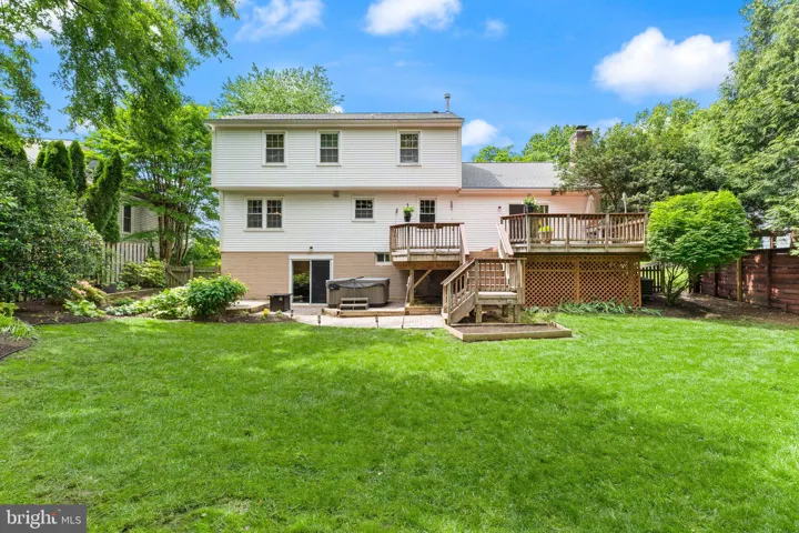 Walk onto the welcoming large front porch and through the double door entry to find a bright and airy living room and formal dining space, both featuring gleaming hardwood floors and updated light fixtures, and updated powder room. The heart of the home is the renovated open concept kitchen, showcasing custom cabinetry, granite countertops, a gorgeous tile backsplash, under-cabinet lighting, and top-of-the-line stainless steel appliances—including a French door refrigerator, Bosch dishwasher, and microwave drawer. A peninsula with bar seating opens into the cozy family room, complete with vaulted ceilings, a wood-burning fireplace, and automated window shades for added convenience. Sliding glass doors lead out to an expansive composite deck, patio pavers, and hot tub (it conveys!), and a backyard oasis – a large, fully fenced backyard, ideal for entertaining or relaxing—ideal for outdoor enjoyment year round!