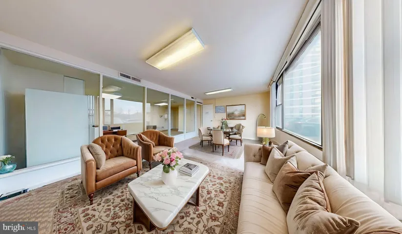 Exceptional commercial condo for sale at 4600 Duke Street #328, Alexandria, VA 22304—located just down the hall from the main lobby in a well-established mixed-use building. This bright, flexible office suite features three private rooms and a reception area, ideal for a variety of uses including retail, professional services, salon, daycare, or religious facility. The unit offers direct exterior access from the parking lot, making it easy for walk-in clients and enhancing visibility for customer-facing businesses. The interior is carpeted and in dated condition, providing a rare opportunity to renovate and customize the space to meet your business needs or design vision. With over 400 residential units in the building, there’s a built-in client base and consistent foot traffic. The second-floor location is easily accessible by elevator, and ample on-site parking ensures convenience for both staff and visitors. Virtually staged images illustrate the space’s potential. This is a rare opportunity to own and personalize commercial space in a prime Alexandria location.