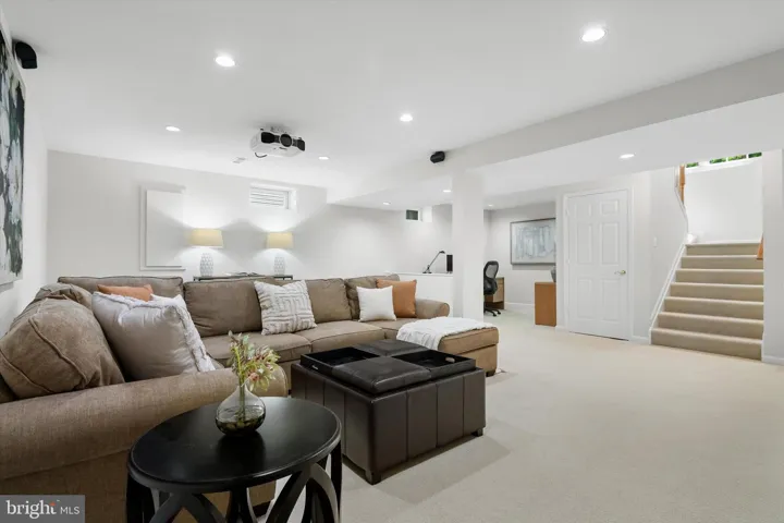 Lower Level: | The finished basement is an entertainer’s paradise. The expansive recreation room is perfect for movie nights, game days, or a complete home theater experience—featuring a conveyed projector, screen, equipment, and speaker system for immersive entertainment. An additional full bathroom adds convenience, while ample storage, including basement shelving (conveys), keeps everything neatly organized and easily accessible.