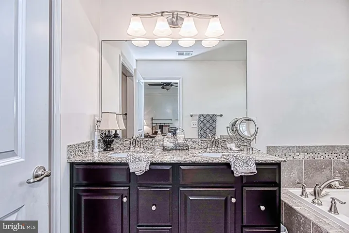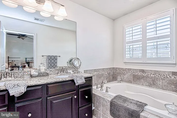 Retreat to an expansive master suite featuring a spa-like bath with a soaking tub, separate shower, dual vanities, and a massive walk-in closet. Enjoy the convenience of an upstairs laundry room on the bedroom level. All bathrooms are beautifully finished with granite countertops and tile flooring.