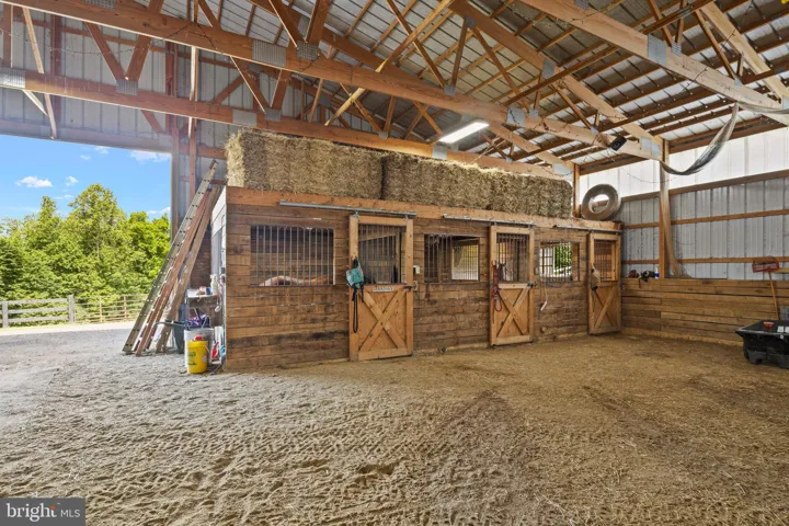 CHARMING CENTER AISLE BARN AT THE BACK OF THE PROPERTY OFFERS 4 STALLS, WASH BAY, TACKROOM, STORAGE AREA AND LOFT HAY STORAGE, THERE ARE 2 PADDOCKS,1 RUN IN, AND AN OUTDOOR ARENA WITH LIGHTS. JUST BEHIND THIS BARN IS A 4 BAY METAL STORAGE BUILDING PERFECT FOR STORING YOUR FARM EQUIPMENT, SAW DUST OR HAY.