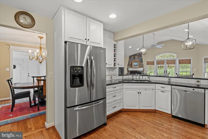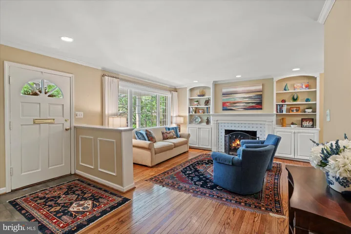 Welcome to this wonderful & charming home in sought after Wellington neighborhood with inviting front porch and roughly 3,200 sqft of living space; plus over 2,300 sqft on one level! Sitting on a private half acre, enjoy the serenity of this wooded oasis with extensive landscaping, flagstone patio & large screened in porch. With an open floor plan this home is absolutely drenched in light. Living room offers custom built-ins & wood burning fireplace. The dining area leads to a bright sun room great for morning coffee and the likes. The gourmet open kitchen with breakfast bar, breakfast nook, brand new Kitchen Aid Pro series double oven, cooktop with hood, overlook your light filled great room with soaring ceilings & gas fireplace. French doors also lead you out to the patio great for grilling & entertaining. Spacious primary suite with high ceilings, custom plantation shutters, gas fireplace, true walk-in closet outfitted with custom closet systems, en-suite bathroom with double vanity, soaking tub & walk-in shower. Secondary bedroom with en-suite bathroom & loft area wonderful for extra storage or reading nook. Third bedroom doubles as den/office and is serviced by its own hall bath. Lower level with rec room, full bath, fourth bedroom, laundry room, wood burning fireplace & storage room with ample space. Home also features hardwood floors & recessed lights throughout, brand new HVAC system & attached car garage. Minutes to Old Town, Fort Belvoir, Reagan National, & an abundance of walking trails near the Potomac River. NEW ROOF AS OF JUNE 18TH 2025.