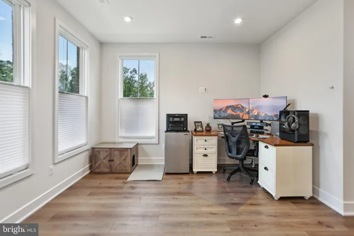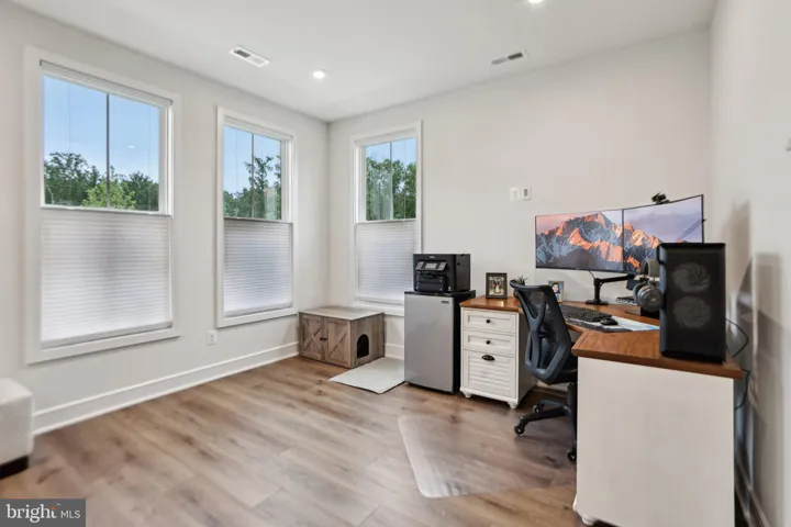 *** REDUCED *** You Won’t Get New Construction with These Upgrades at THIS Price! 1 Year Old Luxury End-Unit Brambleton Bay Townhome by Van Metre Homes. Ideally situated within walking distance to Madison Trust Elementary School, Brambleton Middle School, and Independence High School, and directly across from the spectacular Hal & Berni Hanson Regional Park—offering endless outdoor activities including wooded trails, pickleball and tennis courts, athletic fields, disc golf, a water park, skate park, and dedicated baseball and soccer complexes for athletes of all ages. This modern 4-level home features 3BR, 2 full BA and 3 half BA, and a versatile layout designed for comfort and flexibility. The entrance level offers a perfect space for a home office or game room, while the top-level bonus room with its large balcony provides a tranquil retreat, den, library, craft room or guest suite. The main level offers incredible entertaining space, starting with a chic quartz breakfast bar island accented with upscale pendant lights. Wifi-enabled GE Profile appliances include a dishwasher, microwave, gas stove, wall oven and French door refrigerator. Enjoy a generous storage pantry plus a separate closet for over-sized kitchen gadgets. The southwest dining room with its dazzling chandelier showcases dramatic sunsets. The living room provides plentiful seating whether hosting a large party or seeking snuggle time for two, with a sliding glass door to a Juliet balcony adding romance. The primary BR comfortably fits a California king bed and boasts a sizable walk-in closet, ensuite BA with double sinks and a heated towel bar. 2 secondary BR’s share a hall BA. The top level bonus room has plentiful storage and can be converted to a 4th BR and 3rd full BA, if desired in the future. Extra Features Throughout: Recessed Lighting, Double Panel Doors, beautiful and durable Engineered Hardwood Floors and Custom Cellular Window Shades opening from both top and bottom for privacy and natural light. The 2-car garage has a Tesla Charger and 60-Amp Breaker for EV convenience. The garage floor is Polyurea-Coated for ease of cleaning. Guests can park in the 2+ car driveway or in guest parking spaces on the far side of the common area behind the house. Trash & Recycling and Verizon Fios HD Extreme Package (500 Mbps Fiber Internet & 300 digital TV channels) are included in your HOA fee, along with 5 pools, parks, 18 miles of trails and fun community events. Live just minutes from Brambleton Town Center shopping, dining, movies and more. Enjoy the outdoors at the Brambleton Golf Course or the boating, fishing, and trails at Beaverdam Reservoir. You work hard – now it’s time to play in the friendly, dynamic community of Brambleton!