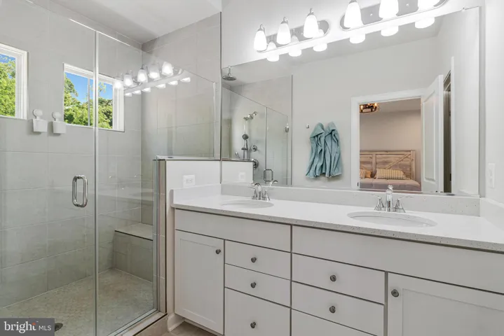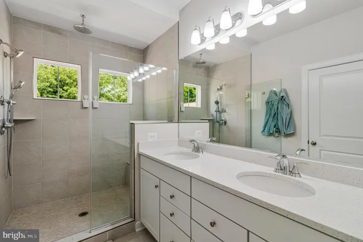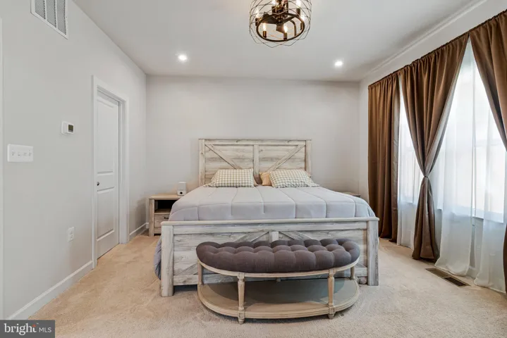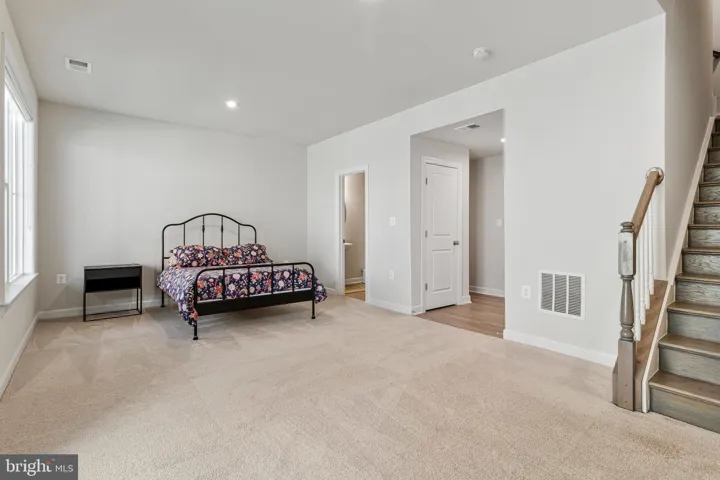 The bedroom level is dedicated to restful living, with three generously sized bedrooms, including a primary suite with a large walk-in closet and a spa-like en-suite bath, featuring a double vanity, upgraded cabinetry, and quartz countertops. The upper level also includes a convenient laundry area.