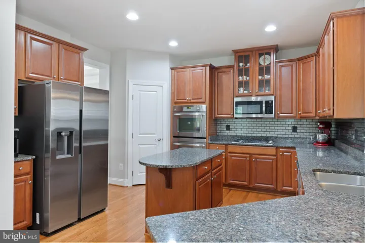 The light-filled open floor plan flows effortlessly from the oversized family room—with its stunning raised stone fireplace—to the chef’s kitchen featuring granite countertops, extended breakfast bar, double wall ovens, stainless appliances, and a walk-in pantry. Hosting is easy with a formal dining room, large mudroom, and private home office on the main level.