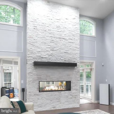 Step into a grand two-story foyer with gleaming hardwood floors that flow seamlessly throughout the main level. The heart of the home is a gourmet chef’s kitchen, featuring an expansive center island, Thermador Masterpiece Series appliances with WiFi control, Wolf Designer cabinetry, a custom pantry, designer sinks, and smart faucets (reverse osmosis)—perfect for culinary enthusiasts. The spacious family room boasts a dramatic two-story ceiling and a stunning two-sided gas fireplace, adorned with quartzite stone on one side and limestone on the other, creating a warm and inviting atmosphere for gatherings or relaxing evenings.