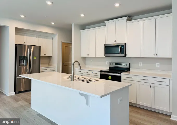 As you enter the spacious foyer with its tray ceiling, you’ll find a coat closet leading to an open and airy informal dining space. The large kitchen features a sizable island, perfect for seating up to four, and is equipped with upgraded granite countertops, a stainless steel Whirlpool appliance package with a 5-burner electric range (including an air fryer upgrade), a full-sized microwave, an upgraded gourmet dishwasher, and a French bottom refrigerator with ice and water supply in the door. An oversized walk-in pantry and designer ceramic tile backsplash provide added elegance. The family room is flooded with natural light, thanks to high ceilings and ample windows, and offers access to a spacious balcony—ideal for outdoor living with a hose bib for gardening. Additional kitchen space is perfect for a coffee bar or butler pantry needs, and clever touches like pull-out shelves and a pull-down spray faucet in the sink elevate the space further. Throughout the home, luxury vinyl plank flooring flows from the foyer, kitchen, dining room, family room, pantry, laundry, hallway, and even into the oversized primary suite. The suite also boasts a large walk-in closet and plenty of windows. The primary bath features double sinks, an upgraded vanity, a super shower with ceramic tile walls to the ceiling, a frameless glass shower enclosure, and a private toilet room. Two spacious secondary bedrooms, each with walk-in closets, offer endless possibilities for retreats, offices, or guest rooms. The home comes complete with an upgraded lighting package, tons of downlights, pre-wires for ceiling fans, and cutting-edge DreeSmart Technology, including climate control, a programmable thermostat, a keypad door lock, high-speed CAT 6 internet wiring, a home automation hub, and energy-efficient features throughout.