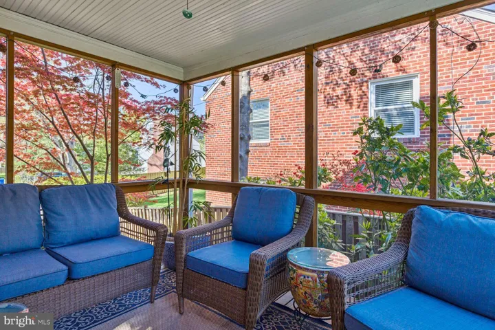A screened-in sun porch perfect for afternoon reading or tea.