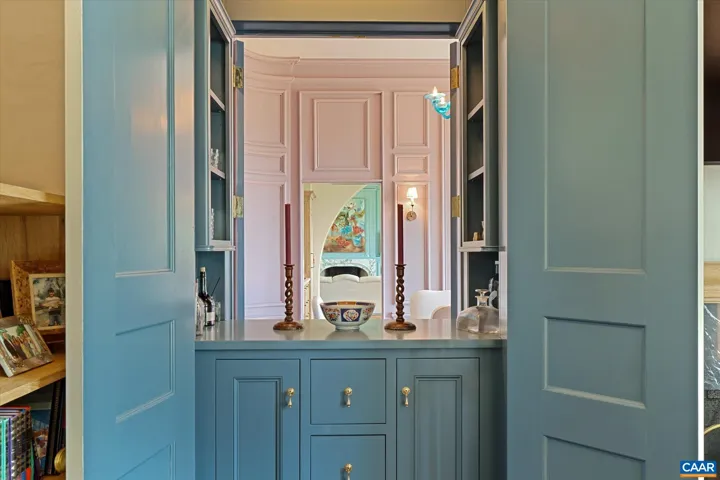 Set on 21 private acres in Blandemar Farm Estates, Sunday Lilac is a French Provincial estate of enduring style and substance. Designed by Peter Block Architects and completed by Young & Meathe Homes in 2021, the home is perfectly positioned to capture uncomparable mountain views and is surrounded by mature landscaping, curated gardens, and natural beauty. Inside, classical architecture meets refined finishes, including reclaimed French oak floors with hand-laid parquet and hand-painted Gracie wallpaper in the entry. The kitchen pairs marble surfaces, Delft tile, a Lacanche range, Sub-Zero refrigeration, and a full butler?s pantry for seamless entertaining. Fixtures by Perrin & Rowe and RH, along with lighting from Paul Ferrante, Jamb, and Murano Glass, add character and continuity throughout. Five bedrooms and 5.5 baths include a serene primary suite with heated marble bathroom floors and Osborne & Little wall coverings. Two wood-burning fireplaces with Italian stone surrounds serve as elegant focal points and add warmth and atmosphere throughout the home. Just minutes from Charlottesville, Sunday Lilac offers a rare opportunity to enjoy elegant, design-forward living in one of Albemarle County?s most distinguished communities,Marble Counter,Fireplace in Family Room,Fireplace in Living Room