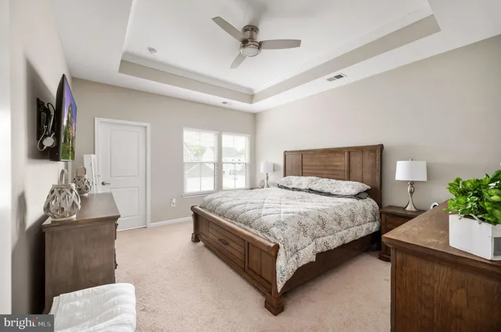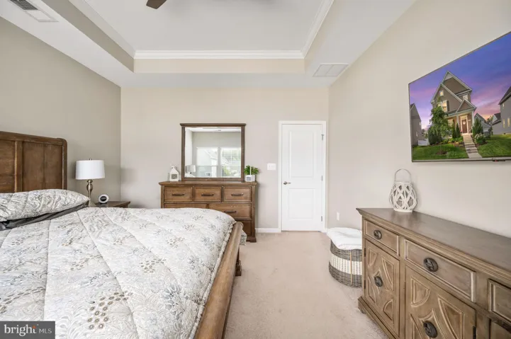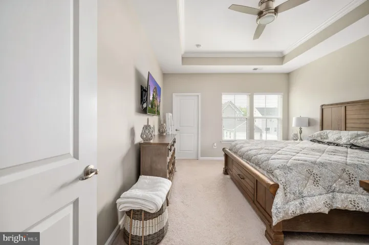 Upstairs, the spacious primary suite features a tray ceiling, a large walk-in closet, and a spa-like ensuite with double vanities and a glass-enclosed shower. Two additional bedrooms and a full bath offer flexible space for family, guests, or a home office.