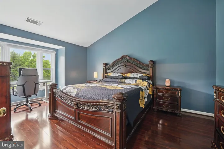 THE UPPER LEVEL: features 3 bedrooms and 2 full bathrooms. The owner’s suite offers vaulted ceiling, a walk-in closet and a fully renovated bathroom with double marble sink.