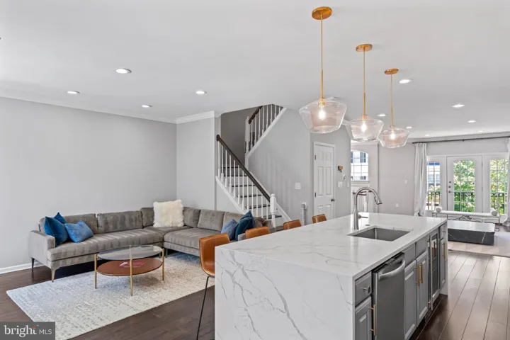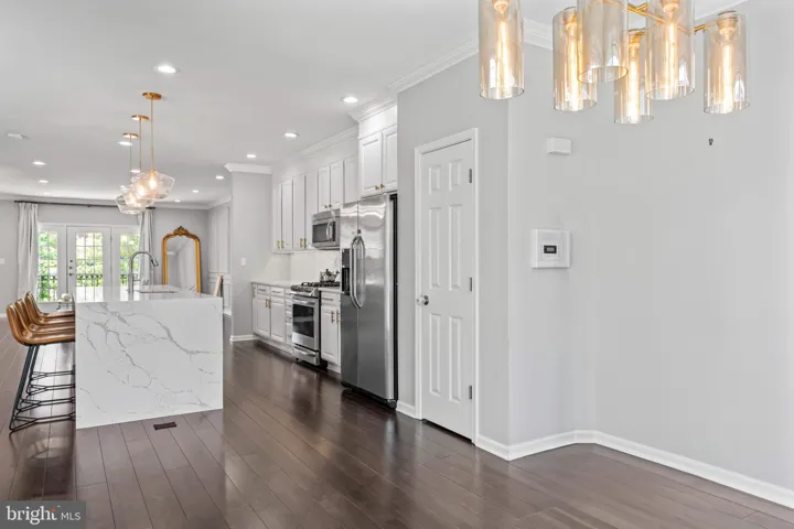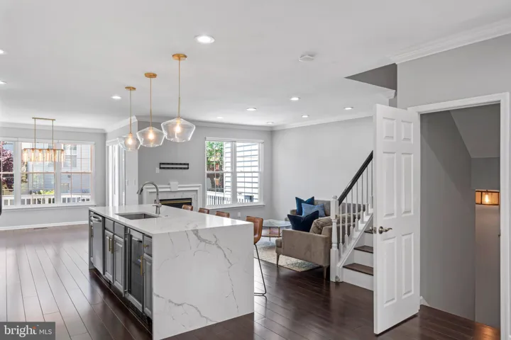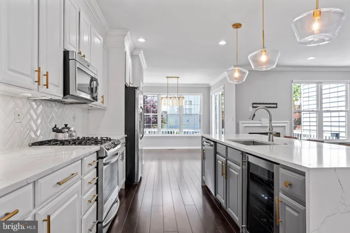 This beautifully updated 3-bed, 3.5-bath townhouse with a 2-car garage and walk-out basement has been thoughtfully upgraded from top to bottom. Recent improvements include new windows (2023), roof (2022), water heater (2019), Trex deck (2023), storm door (2023), and gas stove (2018). The home features hardwood floors on the main level and upper hall, renovated bathrooms, and a showpiece kitchen with a 9-ft Calacatta quartz waterfall island and wine cooler. Berber carpet in bedrooms and basement, Nest smart home devices, and new washer/dryer add to the appeal.