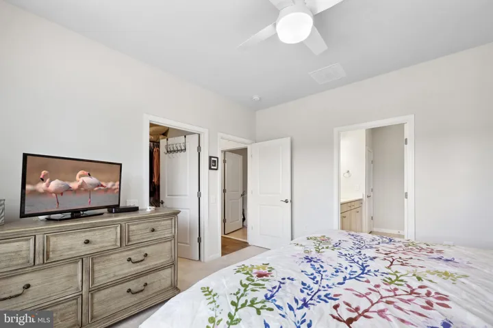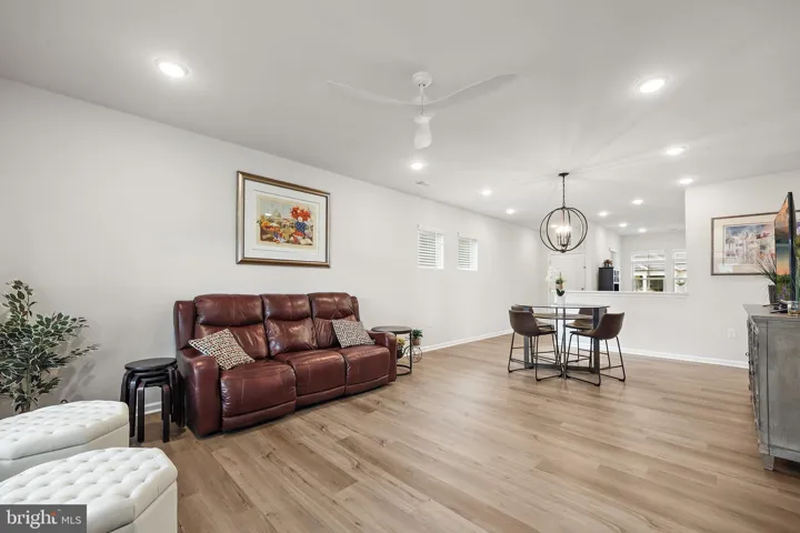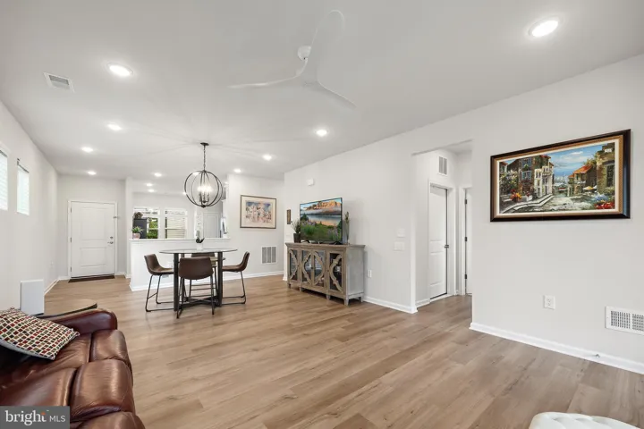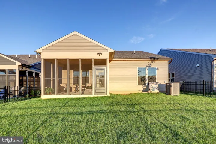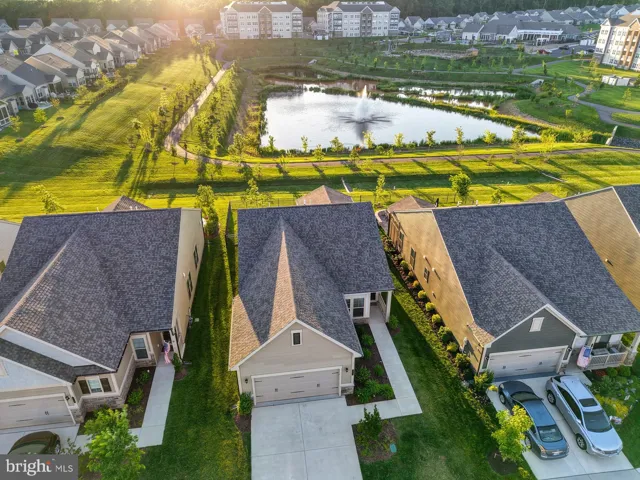 Welcome to this beautifully crafted detached home with water views and is located in Montebello, a Gated Premier 55+ Active Adult Community by Del Webb. Montebello is a unique blend of homes enjoying resort style amenities including an indoor and outdoor pool and full time onsite activities coordinator. This Noir Hill single family model home, built in 2023 and situated on a Premium Lot with stunning Water and Fountain views along the Entire back of the home. The fully fenced backyard is easily maintained and accessed through the spacious Screened In Porch. The Interior floorplan is TWO bedrooms, TWO full bathrooms + PLUS FLEX Space that can be turned into a bedroom/office. The Gourmet Eat-in Kitchen features crisp White cabinetry, Top-of-the-line Upgraded appliances, a designer Vent Hood, and a deep sink, plus Pantry—perfect for culinary enthusiasts. The open-concept design connects the kitchen to the Living and Dining areas, creating an ideal layout for everyday one level living. The Living Room also has access to the Screened In Porch which can be enjoyed throughout all the seasons. The spacious Primary Suite is positioned at the rear of the home to take advantage of the serene water views. It offers generous wall space for a king-sized bed, a custom walk-in closet, and a luxurious attached bathroom with dual sinks and a linen closet. The full size laundry room with extra storage is located within close proximity to the primary suite. The secondary bedroom is privately tucked away and includes a large closet with convenient access to the nearby full hall bathroom. The additional FLEX Space is perfect for a home office, guest space, or hobby room. The two-car garage offers excellent storage options for seasonal items, bicycles, and more. Montebello residents enjoy an array of resort-style amenities, including The Guilford House, a clubhouse with pools, a fitness studio, game rooms, a social hall, and an outdoor kitchen with a covered lounge area. Additional features include pickleball and bocce ball courts, a community garden, walking trails, a tot lot, and a full-time lifestyle director. Convenient location to major commuter routes, restaurants, shopping & hospitals.