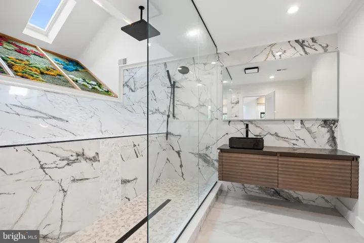 Upstairs, three additional bedrooms suites are thoughtfully appointed with cathedral ceilings, designer accent walls and en-suite skylit baths featuring operable Velux windows. A luxurious guest suite offers the flexibility of a second primary with a large closet and a generous en-suite bath.