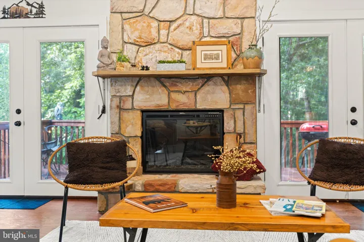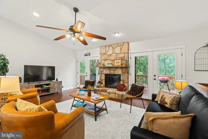 A lovely large front porch invite you to this home which offers a spacious open concept living area with a brand new Electric Fire place with beautiful stone hearth. The kitchen was recently renovated to give it a more open feel with brand new white quartz counter tops, Freshly painted cabinets, brand new SS refrigerator with ice maker, new microwave. The house is freshly painted with neutral colors and completely redone. There are 2 large spacious bedrooms with a shared bath on the main level. The main level bedrooms has a large walk in closet with custom cabinetry access to bath. The other bedroom on the main level currently has 2 bunk beds and closet with custom shelving. The main level offers dual access to the large wood deck. Newly installed dimmable recessed lights can be customizable to your choice and completes the look of the main level. Brand new Water Heater and HVAC replaced in 2024.
