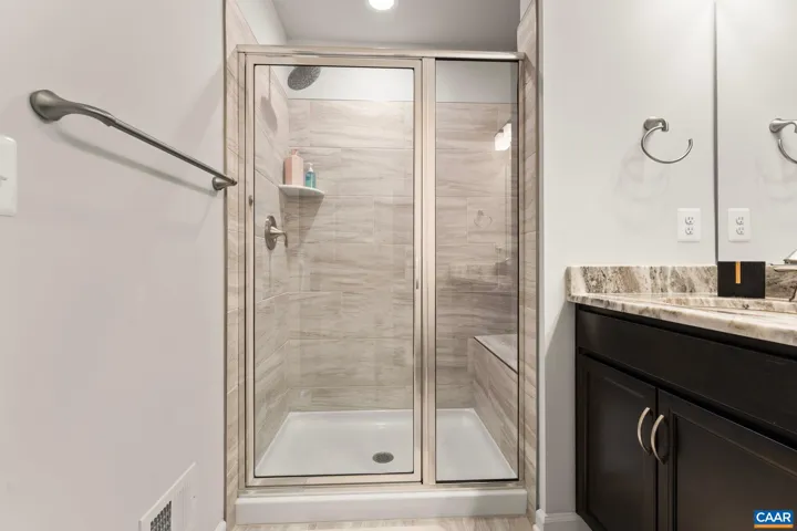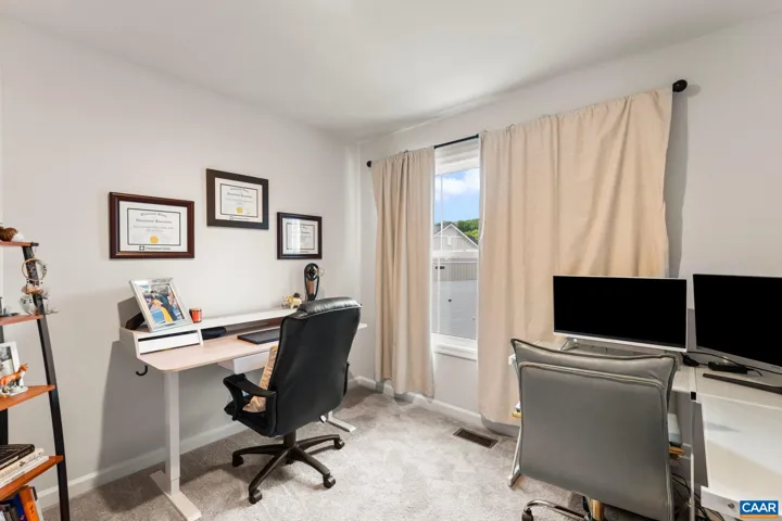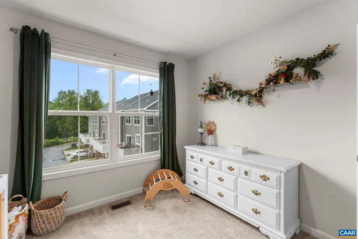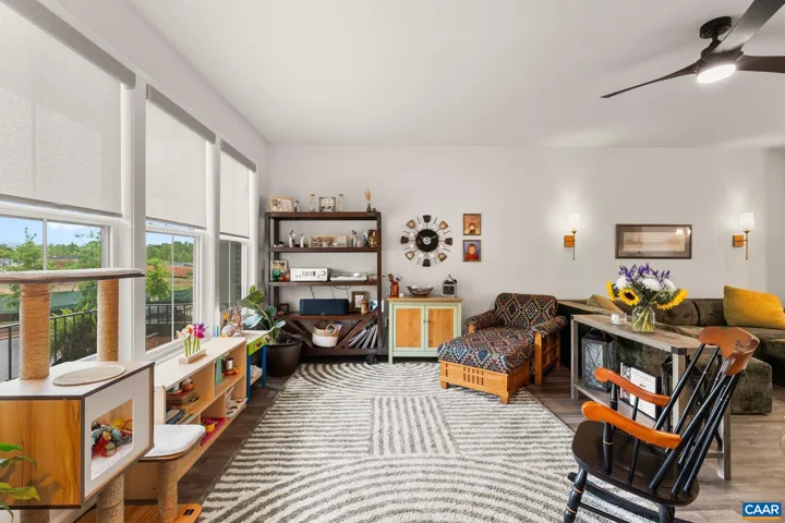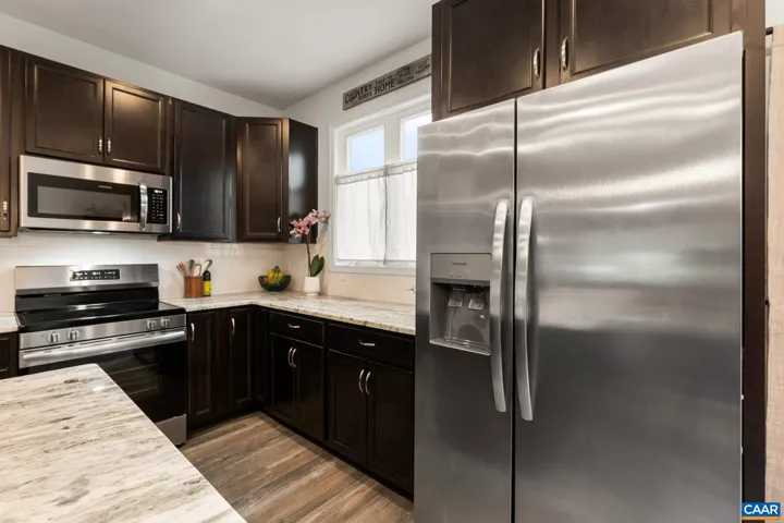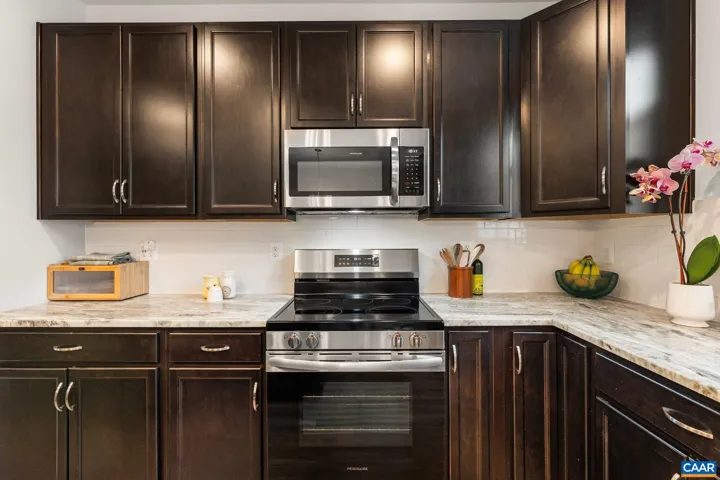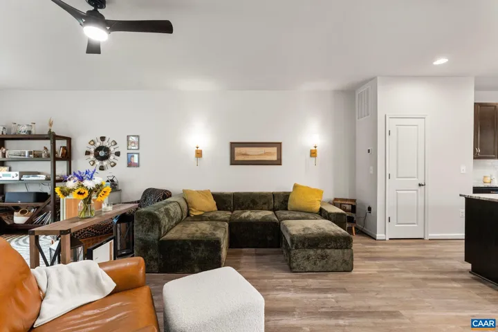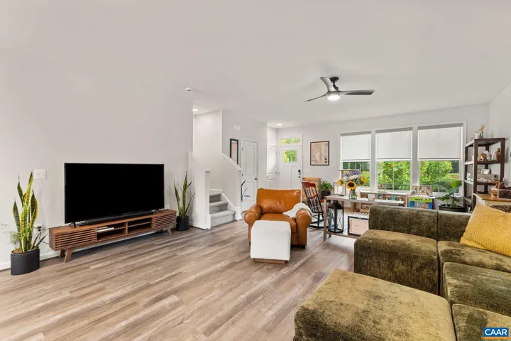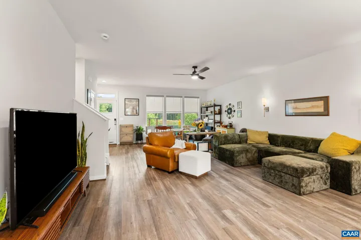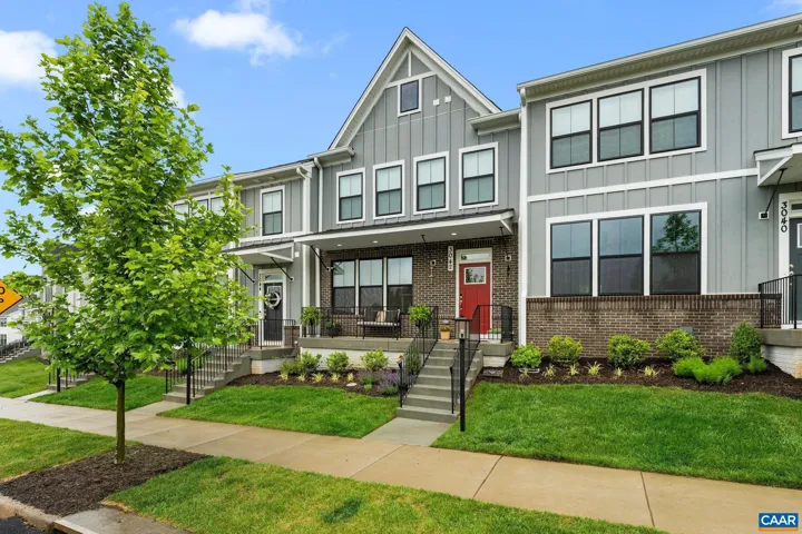 Desirable OPEN CONCEPT Kenridge floorplan, with plenty of natural light, just MINUTES to downtown Charlottesville, UVA medical center and Fifth Street Station! Biscuit Run is practically in your backyard! Easy access to I64 makes this location extremely convenient! LUXURY vinyl plank on main level and QUARTZ countertops in the kitchen. Upstairs primary bedroom has a SPACIOUS EN-SUITE BATHROOM and WALK-IN CLOSET, two additional bedrooms, full bath and laundry room conveniently located next to primary bedroom. Downstairs flex space includes a half-bath and garage entrance. The owners have added OVERHEAD STORAGE that conveys in the two car garage, dimmable wall scones in the living room, and CUSTOM WINDOW TREATMENTS in living room and primary bedroom. The back deck faces one of the green spaces within the community, and playground is just a short walk away! This design offers a full front porch.. Come experience the convenience and ease of this beautiful home!,Quartz Counter