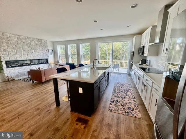 BRAND NEW MAINTENANCE FREE 3,300+ SF Townhome. Just minutes from shopping and I-95, the new Kinsley Estates Luxury Townhomes community is also within walking distance to Stafford Hospital. KINSLEY ESTATES LUXURY TOWNHOMES GRAND OPENING! Fabulous incentives on First row of 8 homes. Immediate deliveries! ULTRA LARGE 26’x50′ townhomes, 30% wider than most townhomes! 500+ sf oversized two car garages. Across the street from Stafford Elementary School and short walk to Stafford Hospital and Stafford County government buildings, only two blocks. Commuters Dream, only 5 minutes to I-95 express lanes. Close to Brooke Rd. VRE station (7 minutes) and Brooke Point High School (4 minutes). Close proximity to new Stafford shopping complex and excellent dining and shopping in downtown Fredericksburg. This unit is MOVE IN READY NOW! OPEN floorplan with 4 bedroom, 3 1/2 bathrooms and impressive room sizes due to the 26′ width of the townhomes. Main floor bedroom with full bath and separate rear staircase to upper level. 18’6 x 15’2 Owner’s suite with double walk-in closets. Conveniently located laundry room on bedroom level. 100″ sleek fireplace, craftsman interior trim package, hardwood oak stairs to upper levels, gorgeous sleek upgraded quartz countertops in full bathrooms and kitchen, upgraded painted 42″ white maple cabinets with gorgeous contrasting stained burlap island, tasteful tile backsplash in kitchen, stainless steel appliances, induction cooktop, glass hoodvent, and upgraded flooring and lighting. Hardwood look LVP on primary floor including foyer, kitchen, family room and powder room. 9′ tall ceilings on all 3 levels. Contemporary and sleek black windows (exterior only black color), upgraded black garage door with remote opener. Stone accents on front with custom hand-built metal awning. Concrete patio off rear yard. Fully sodded yard. Ask about our flexible incentive options, builder offering $$ towards free options OR interest rates as low as 4.875%!! Incentives require use of a preferred lender and title company. See sales managers for details.