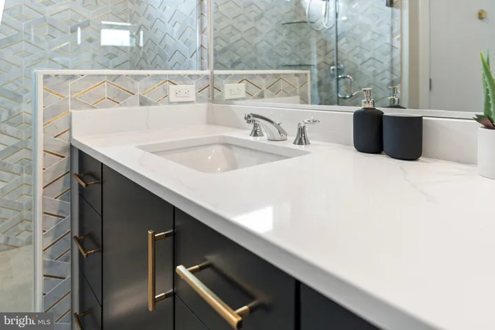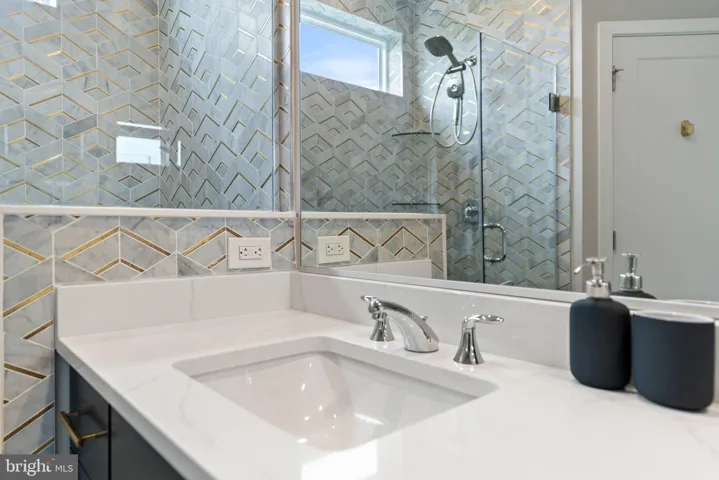 Upstairs, discover the luxurious master suite with a spacious walk-in closet and an en-suite bathroom featuring a custom tiled shower, dual sinks, and plenty of storage. Two additional generously sized bedrooms share a beautifully appointed hall bathroom. The oversized laundry room is a practical bonus, complete with a countertop sink and ample cabinetry.