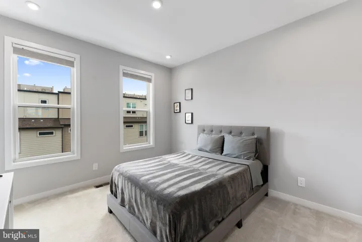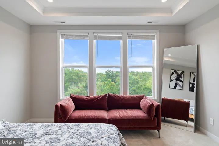 The gourmet kitchen is a chef’s paradise, featuring top-of-the-line stainless steel appliances, elegant quartz countertops, and a stunning waterfall island. A butler’s pantry and a wet bar with ample cabinet space complete this culinary haven. Relax on the main level balcony and enjoy serene views of the community’s green spaces.
