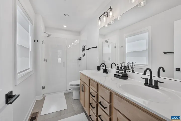 BEST BARGAIN IN TOWN! MINUTES TO UVA and heart of Downtown C’ville, convenience of Wegmans at 5th Street Station. This like NEW Meridian Model Home was built to the highest standards. The seller is heartbroken to leave this dream home behind – due to a job relocation out of state. Step inside and experience an open-concept layout designed with EFFORTLESS FLOW and elegant details throughout. The GOURMET KITCHEN is a true showstopper?complete with granite countertops, a 9-foot island, and sophisticated cabinetry?perfect for hosting friends and family. Enjoy quiet mornings or evening breezes on the PRIVATE SCREEN PORCH, or retreat to the spacious primary suite, featuring a cathedral ceiling, a PRIVATE BALCONY, and a luxurious bath with walk-in shower and double vanities. Need space for guests or extra living? The FINISHED BASEMENT includes a 4th bedroom, full bath, cozy family room, and a gym area. The seller invested $5,000 in a Roof Top Services finish under the porch, another thoughtful touch.,Granite Counter,Painted Cabinets,Wood Cabinets