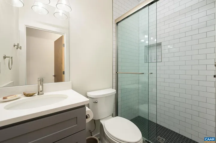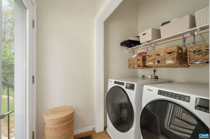 Just steps from vibrant city living, this stylish, contemporary home sits peacefully on a quiet cul-de-sac, overlooking preserved city green space. Step onto the scenic, wooded Rivanna Trail to stroll along Moore’s Creek, or head to the Downtown Mall, Belmont, Ix Park, or 5th Street Station?all walkable destinations. Nearly new, the home features large energy-efficient windows that flood the space with natural light, custom blinds and vaulted ceilings across three generous bedrooms. Stunning oak floors span the top two levels. The popular open-concept layout seamlessly combines the Dining Room, Kitchen, and Living Room?ideal for entertaining or relaxed everyday life. Additional high-end features include a custom-designed kitchen (sleek grey cabinetry, quartz countertops, tile backsplash, and stainless-steel appliances) and upgraded baths (designer tile, frameless glass shower, and double vanity in the Primary Bath). The best part–the rooftop terrace! It’s the entire footprint–large enough for multiple seating areas; and mountain and greenspace views. Offering a perfect mix of nature and city convenience.,Painted Cabinets