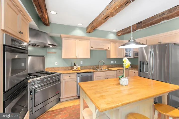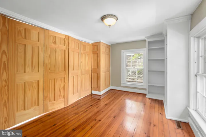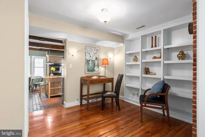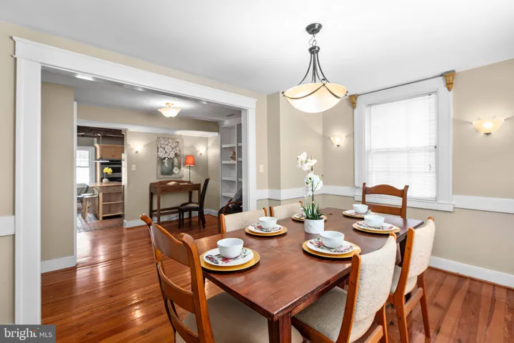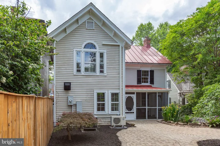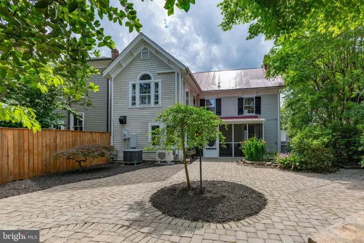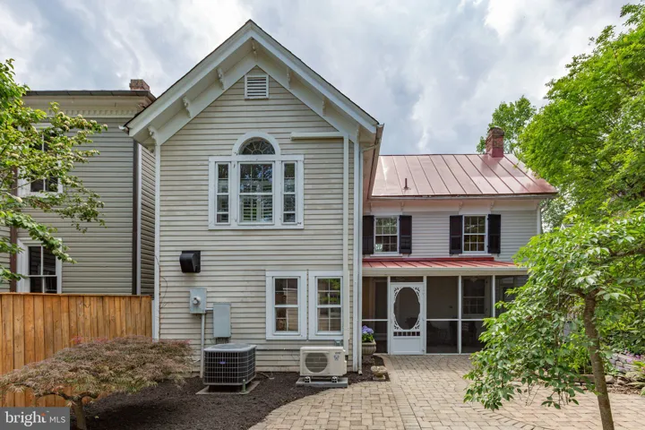 The main level boasts an entry foyer, living room with a gas fireplace, separate dining room, powder room and 16 x 14 modern kitchen with a brick floor. The cozy breakfast area with French doors opens to a screened-in patio—perfect for morning coffee or evening relaxation. Step outside to a beautifully landscaped backyard that offers rare privacy in the heart of downtown. Upstairs living includes four well-appointed bedrooms, 2 full bathrooms and a laundry closet. The 16 x 14 primary suite has cathedral ceilings and an en-suite bath. Original pine flooring throughout most of the upper level. Whether you’re commuting via rail or strolling through downtown’s historic streets, this rare offering combines timeless elegance with everyday practicality. Don’t miss your chance to own a unique piece of Fredericksburg history.