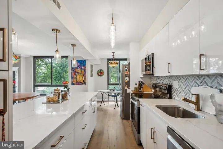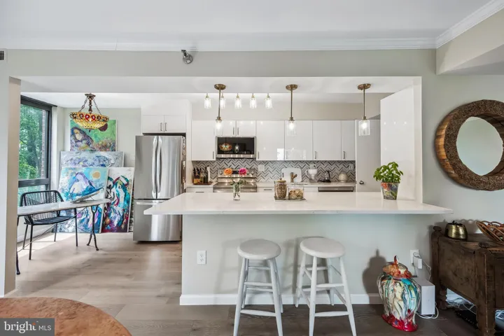Welcome to this Modern Luxury Condo at The Encore of McLean! This 2-bedroom, 2-bathroom condo features a bright and spacious floor plan. As a corner unit on the 9th floor, it offers stunning views and an abundance of windows that fill the space with natural light. This beautifully renovated condo boasts new hardwood floors, fresh paint, and a fully renovated kitchen with new countertops, modern cabinets, backsplash, and brand-new appliances. The oversized balcony, overlooks two sides of the building, overlooks treetops and the cityscape. Bright and inviting, the condo includes in-unit laundry, two enclosed garage spots, and extra storage. Located less than a mile from Tysons Corner Center and just steps to the metro, Wegmans, Capitol One Hall, and more, it offers unmatched convenience.