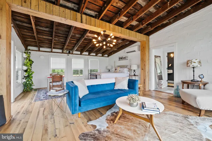 crib. Reclaimed barn wood floors and encaustic cement floor tile add to the Guest