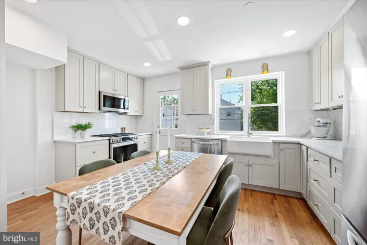 Step inside to discover an inviting open-concept main level with hardwood floors, recessed lighting, and a spacious living and dining area perfect for both relaxing and entertaining. The renovated kitchen features stainless steel appliances, quartz countertops, a stylish tile backsplash, and ample cabinetry—making meal prep a breeze.